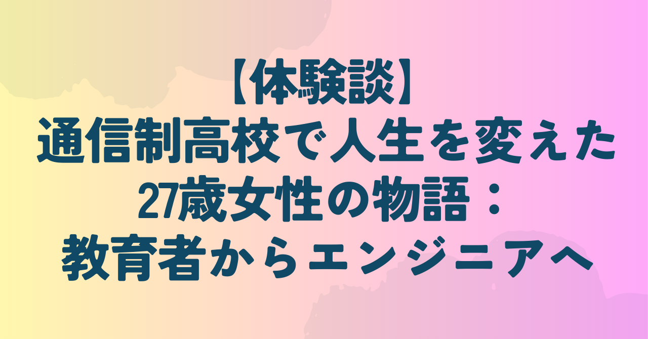 不登校で挫折してからの逆転劇。通信制高校で人生を変えた27歳女性の物語:教育者からエンジニアへ