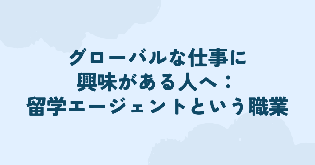 グローバルな仕事に興味がある人へ:留学エージェントという職業