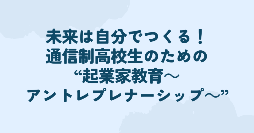 【通信制高校生のための新しいキャリア教育のカタチ】 「将来何をしたいかわからない」「自分に合った仕事って何だろう」 通信制高校で学ぶあなたは、きっとそんな風に考えたことがあるでしょう。実は、そんな悩みを解決するヒントが「起業家教育」にあり... -