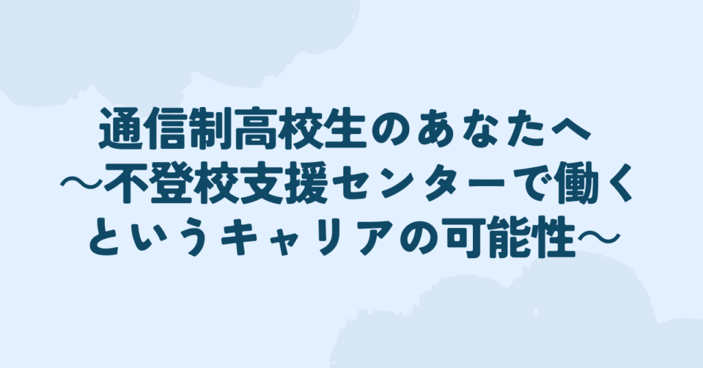 通信制高校生のあなたへ ~不登校支援センターで働くというキャリアの可能性~