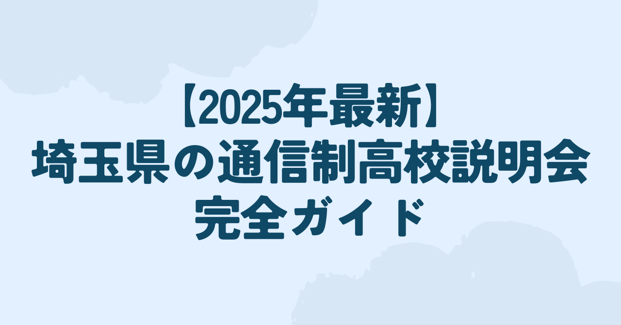 埼玉県では定期的に通信制高校・サポート校の合同説明会が開催されており、高校転編入・不登校・進路変更を検討している中高生とその保護者の方々に向けた重要なイベントとなっています。